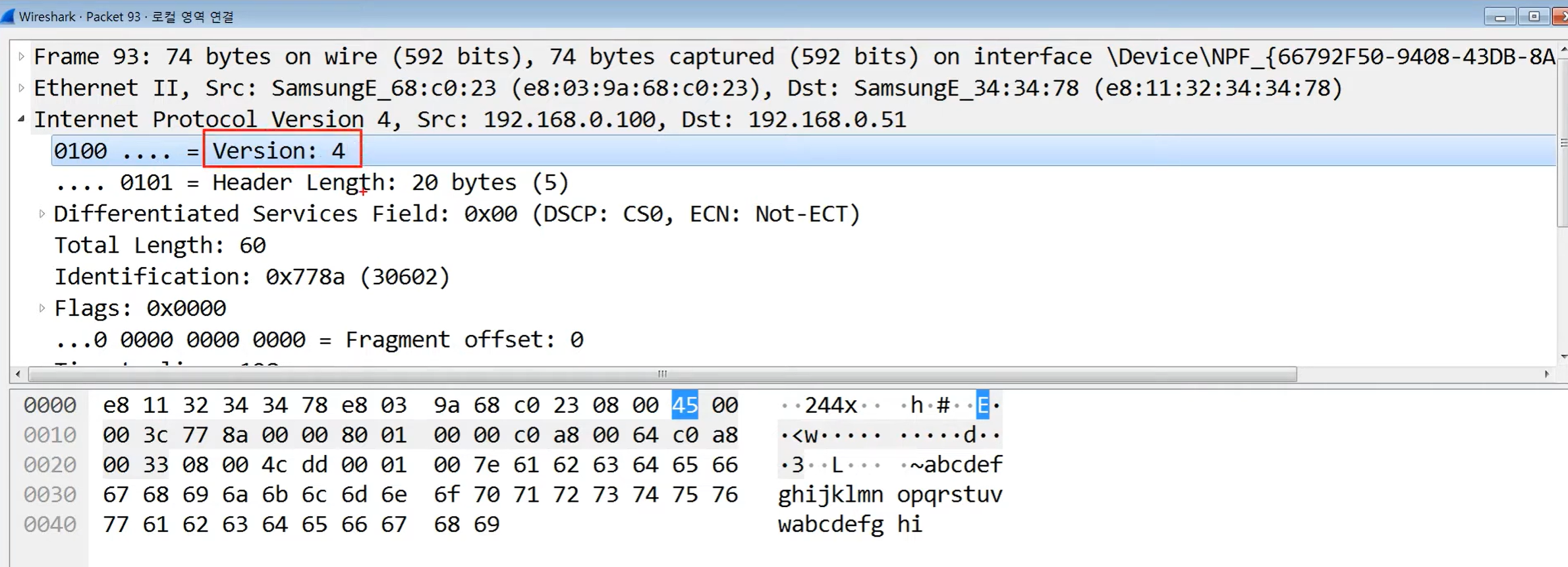 - 프로토콜의 길이 (4bit) : 5 (일반적으로 20byte이므로)