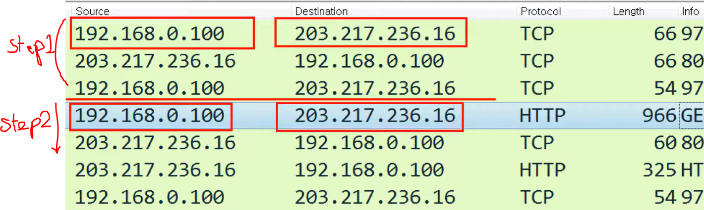 - 우클릭 Follow > TCP Stream : TCP가 서로 데이터 주고 받을 때 동기화한 내역을 뽑아서 봄