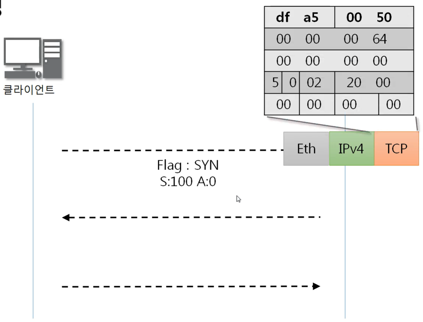 - Sequence Number : 100 (랜덤한 값. 클라이언트 마음)