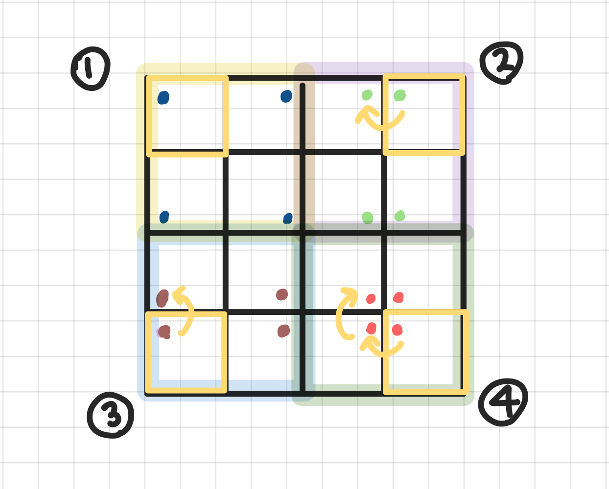 전제2에 의해 결국 2x2의 구멍 4개 위치만 구하면 된다.